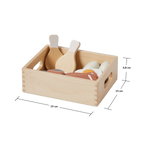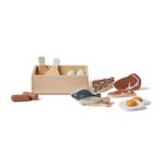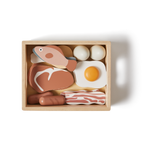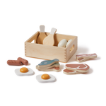 Let your little one become familiar with ingredients and cooking techniques with this set of long-lasting, wooden toy food. For instance, your young chef will learn cause and effect when you pretend to break the eggs and make two perfect sunny-side up versions – one for you and one for me. With this wooden Fish & Meat set, your child can serve a delicious breakfast, lunch, or dinner for two. In the wooden carte is a set of juicy steaks, fresh fish, fried eggs with bacon and sausages, hard-boiled eggs, and chicken drumsticks. All these wooden treats are perfectly sized for little hands to grip.