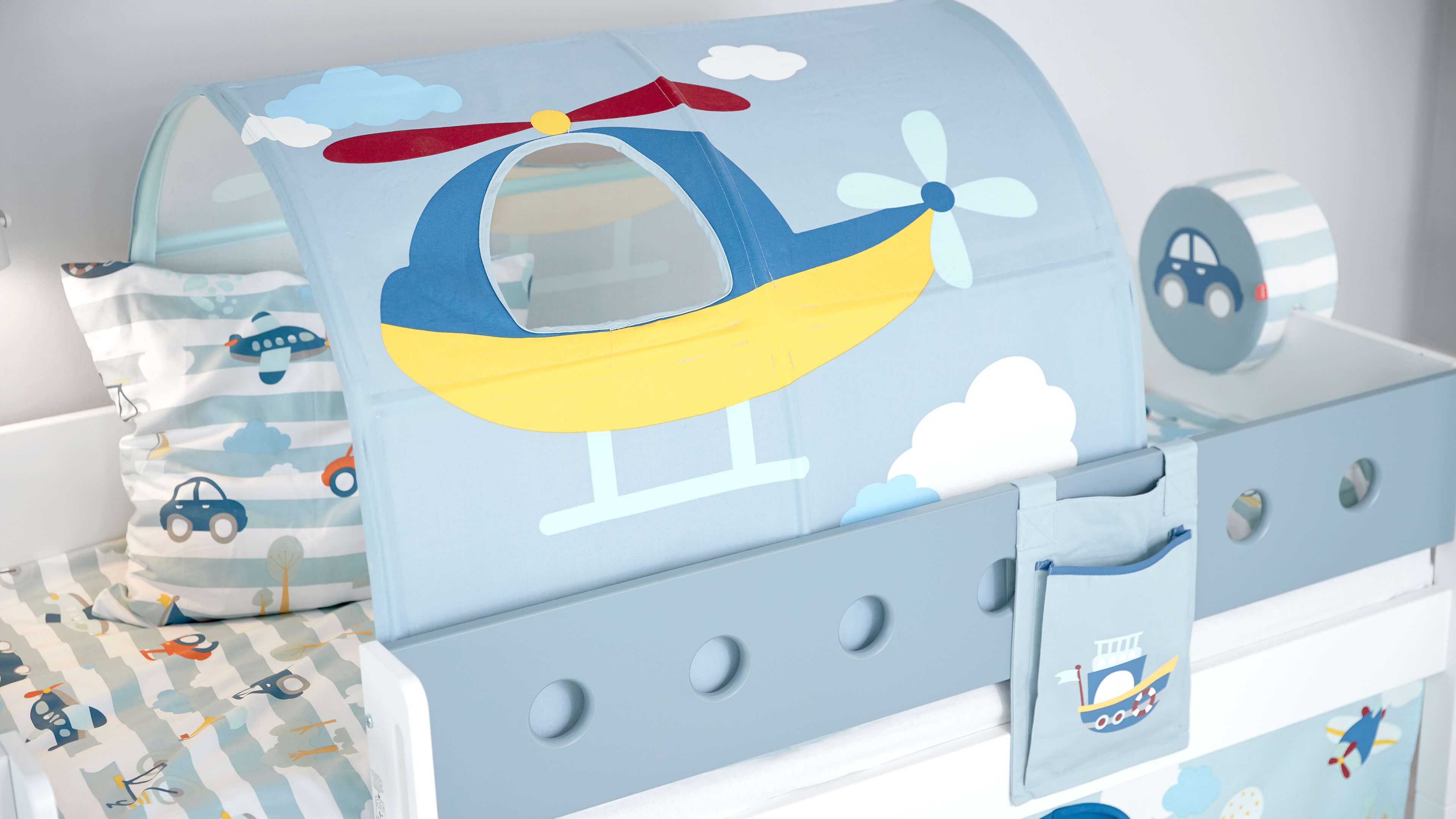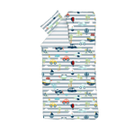 Bed linen from the Transportation collection for the boy who loves cars, boats and helicopters. The bed linen is in 100% satin cotton, OEKO-TEX® STANDARD 100 and washable. Double-sided print with different prints on the sides. This bed linen will make bedtime even more fun for children.