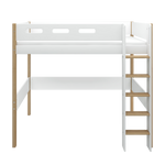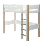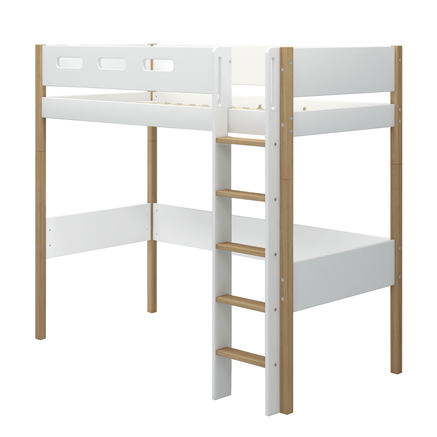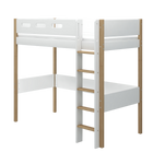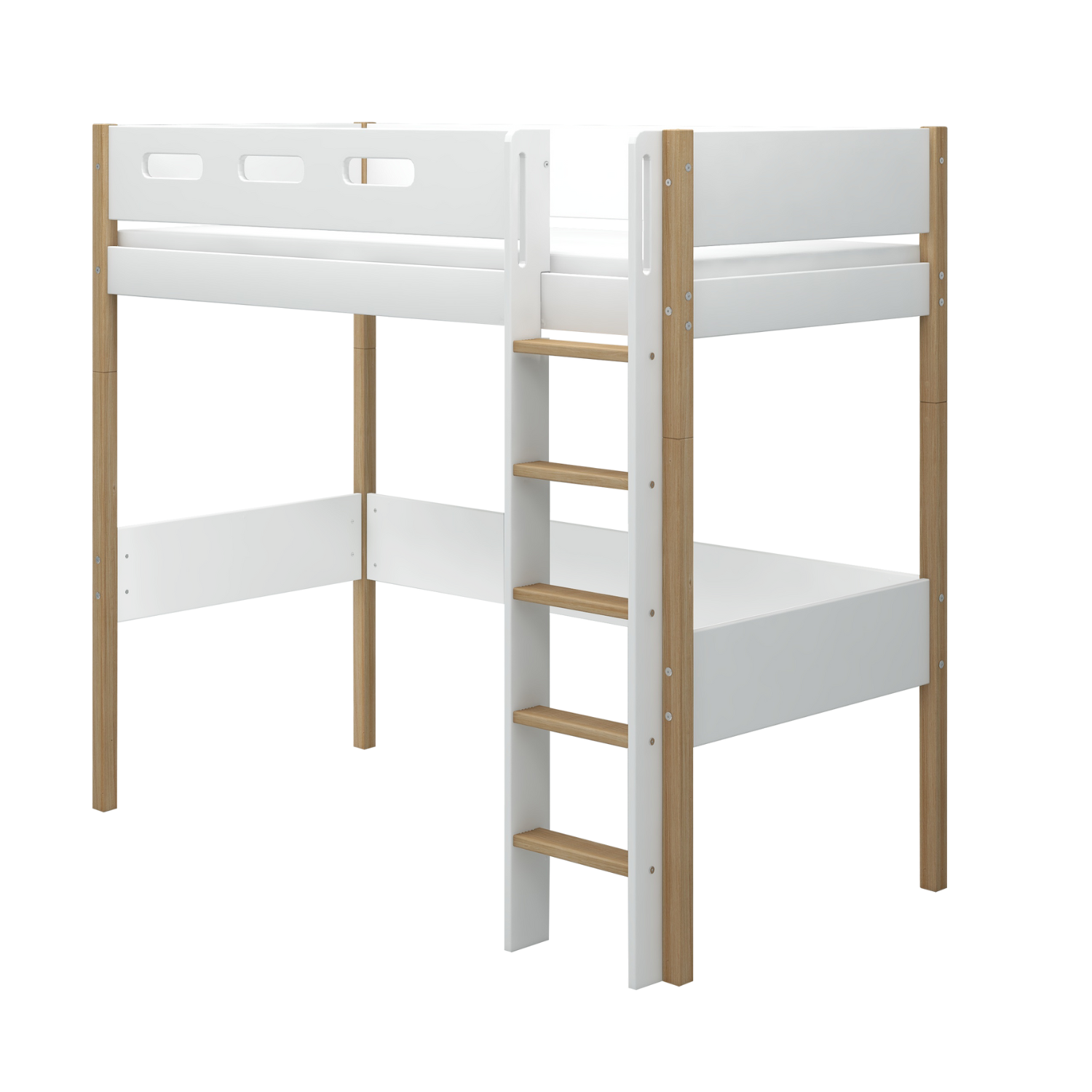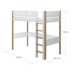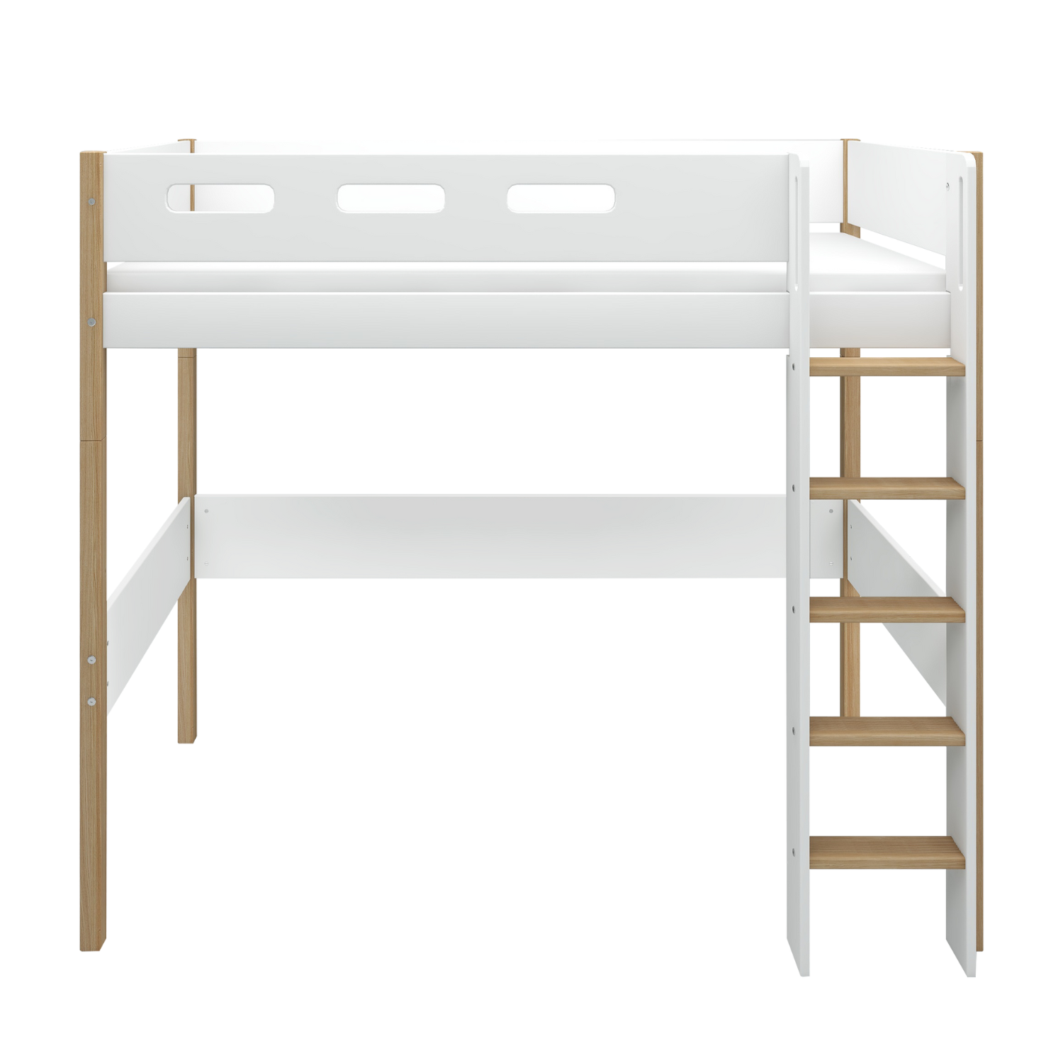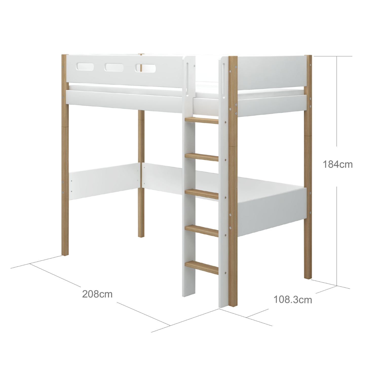 High Bed 184 cm with Ladder and Safety Rail, 90x200 cm, White/Oak