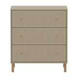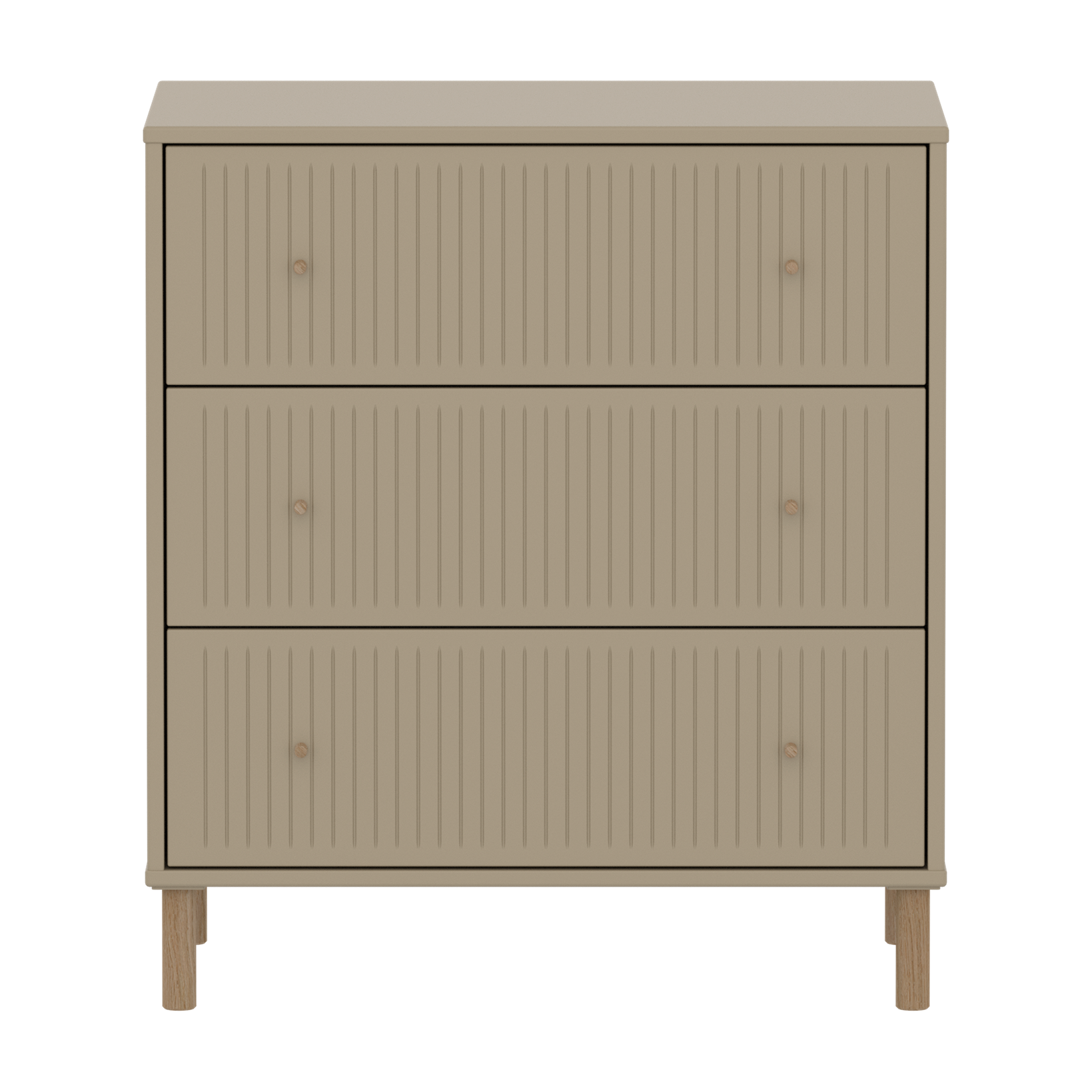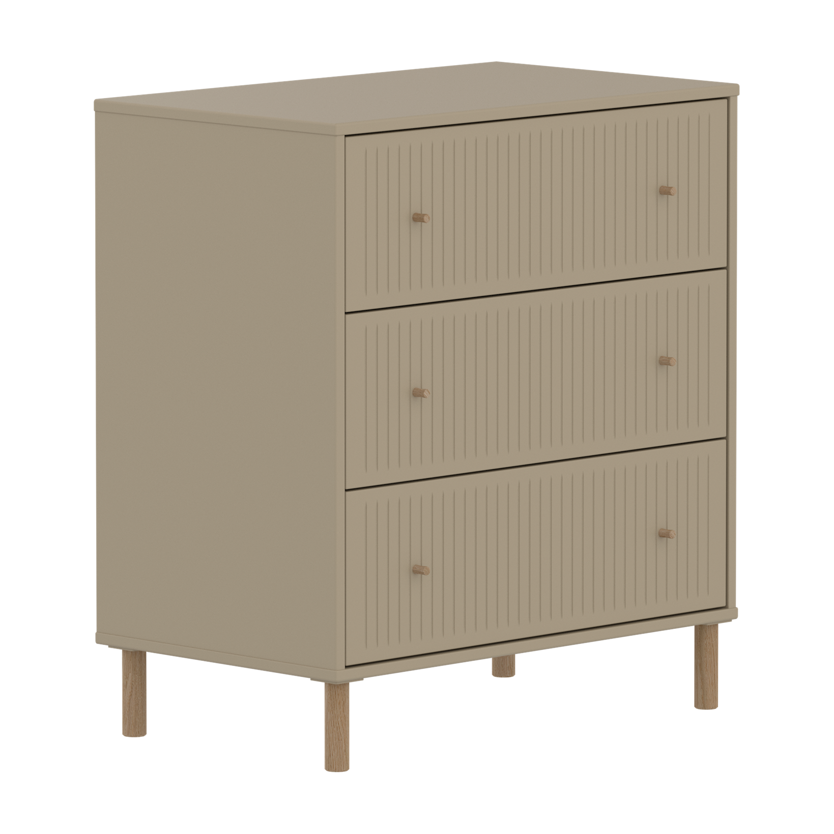 The FLEXA SAGA Chest in oat features 3 drawers with soft-close mechanisms to protect little fingers. When using the plastic feet, the chest with 3 drawers can be placed under our mid-high beds for efficient use of space in the kids room. The round oak knobs add a simple, clean design element.