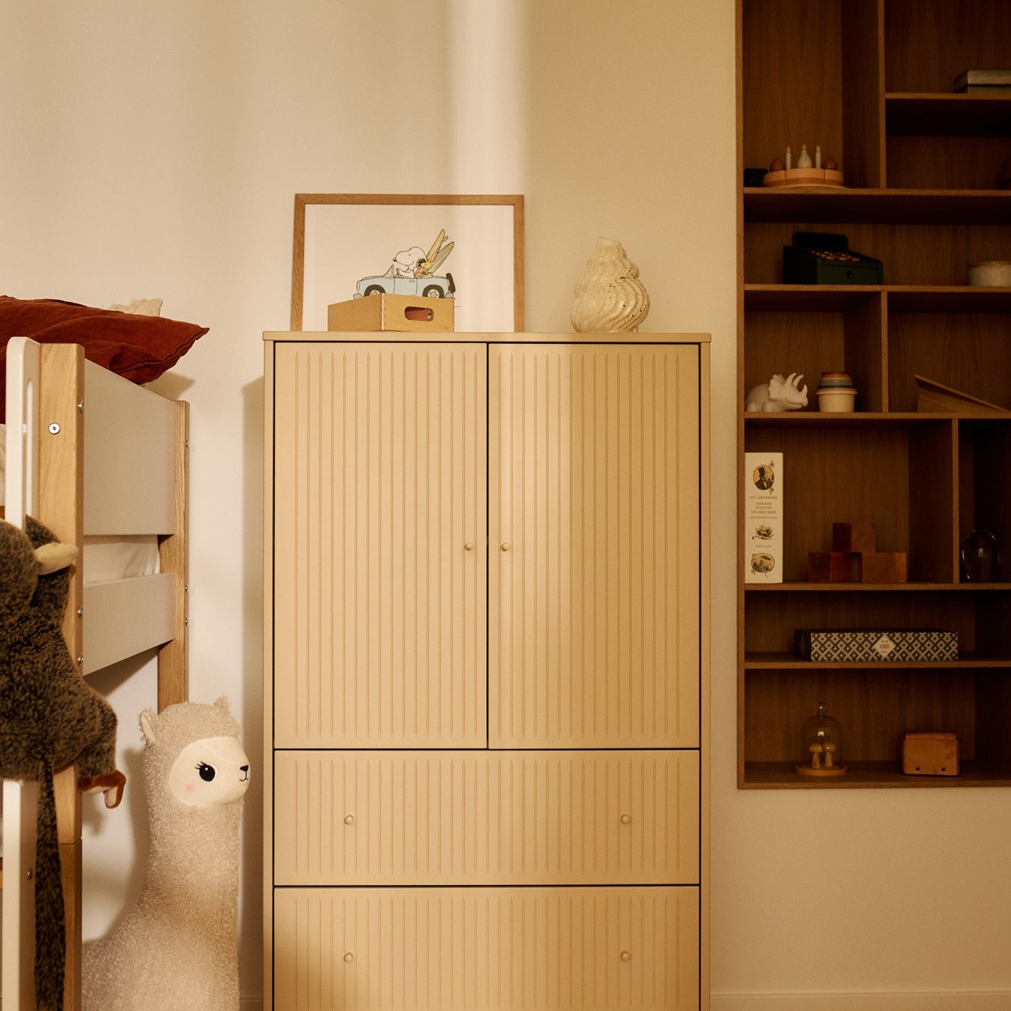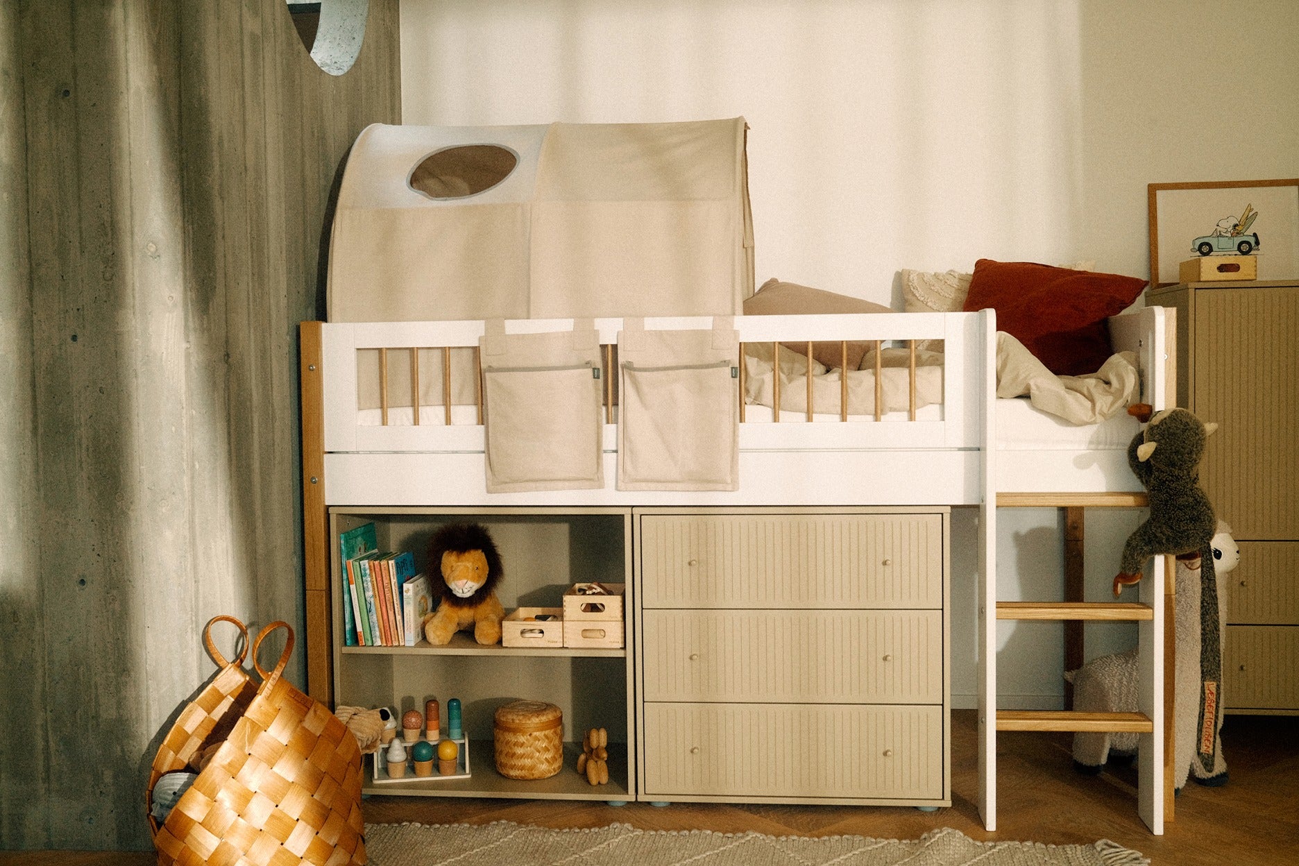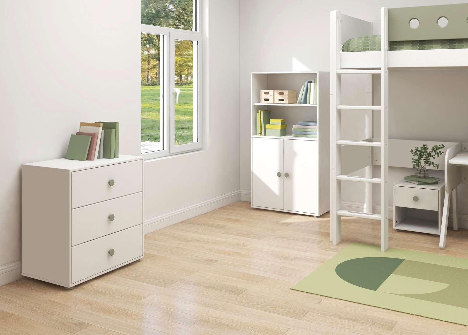 Los productos de almacenaje son fundamentales para el equipamiento del dormitorio infantil y son ideales para guardar ropa, libros, juguetes y también para exhibir pequeños objetos. Lo básico es que permitan limpiar la habitación fácilmente y que los niños puedan acceder a los juguetes sin problema. FLEXA brinda una amplia variedad de soluciones de almacenaje en sus diferentes colecciones. En la gama de productos, tienes librerías, cajoneras, armarios, módulos, estantes y bancos de almacenaje. Las soluciones de almacenaje de cada una de las colecciones de FLEXA presentan un diseño escandinavo con materiales duraderos. Los productos se pueden usar y personalizar de muchas maneras para que puedas dar rienda suelta a tu imaginación. Esta flexibilidad es esencial para el diseño de los productos de FLEXA y, en el caso del almacenaje, no es diferente. Por ejemplo, utiliza las cajoneras como módulo independiente o bajo una cama media-alta o alta. Lo mismo pasa con los bancos de almacenaje, que se pueden emplear como banco, pequeña mesa o incluso como mesita de noche.