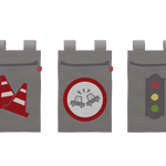 Tres bolsillos de cama con estampado de semáforo, conos y señal de tráfico. Incorpora los bolsillos a la barrera de seguridad en la cama y úsalos para guardar las cosas favoritas cerca de la cama. Los bolsillos tienen velcro en la parte trasera para montarlos con facilidad. Son de 100 % algodón, OEKO-TEX® STANDARD 100.