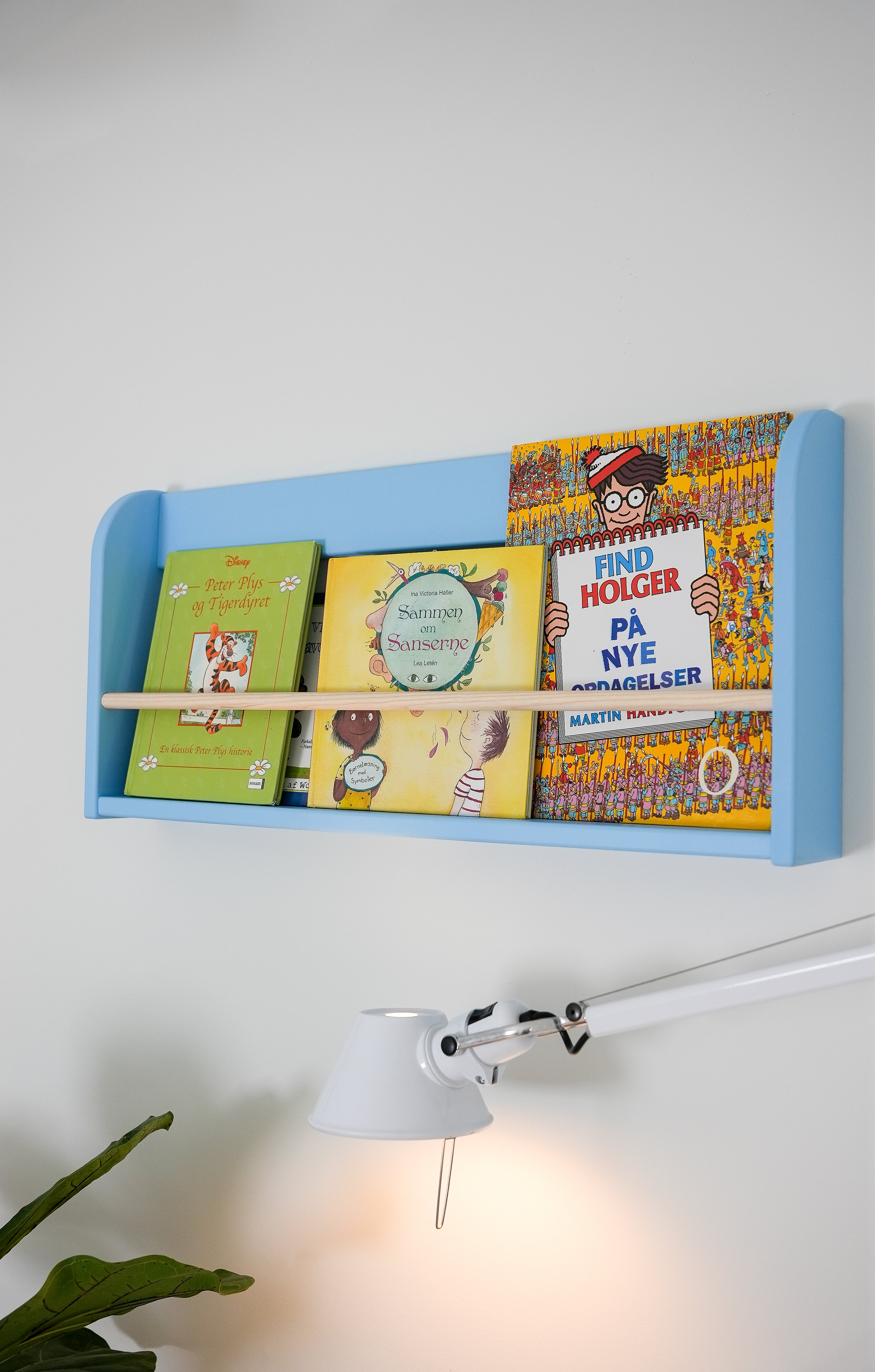 El estante FLEXA Dots obra de Charlotte Høncke es el lugar perfecto para poner libros y otros pequeños objetos en el dormitorio infantil. Cuelga el estante en la pared para que tu hijo pueda llegar fácilmente a los libros. El estante está disponible en diversos colores, y es de fresno macizo y MDF.
