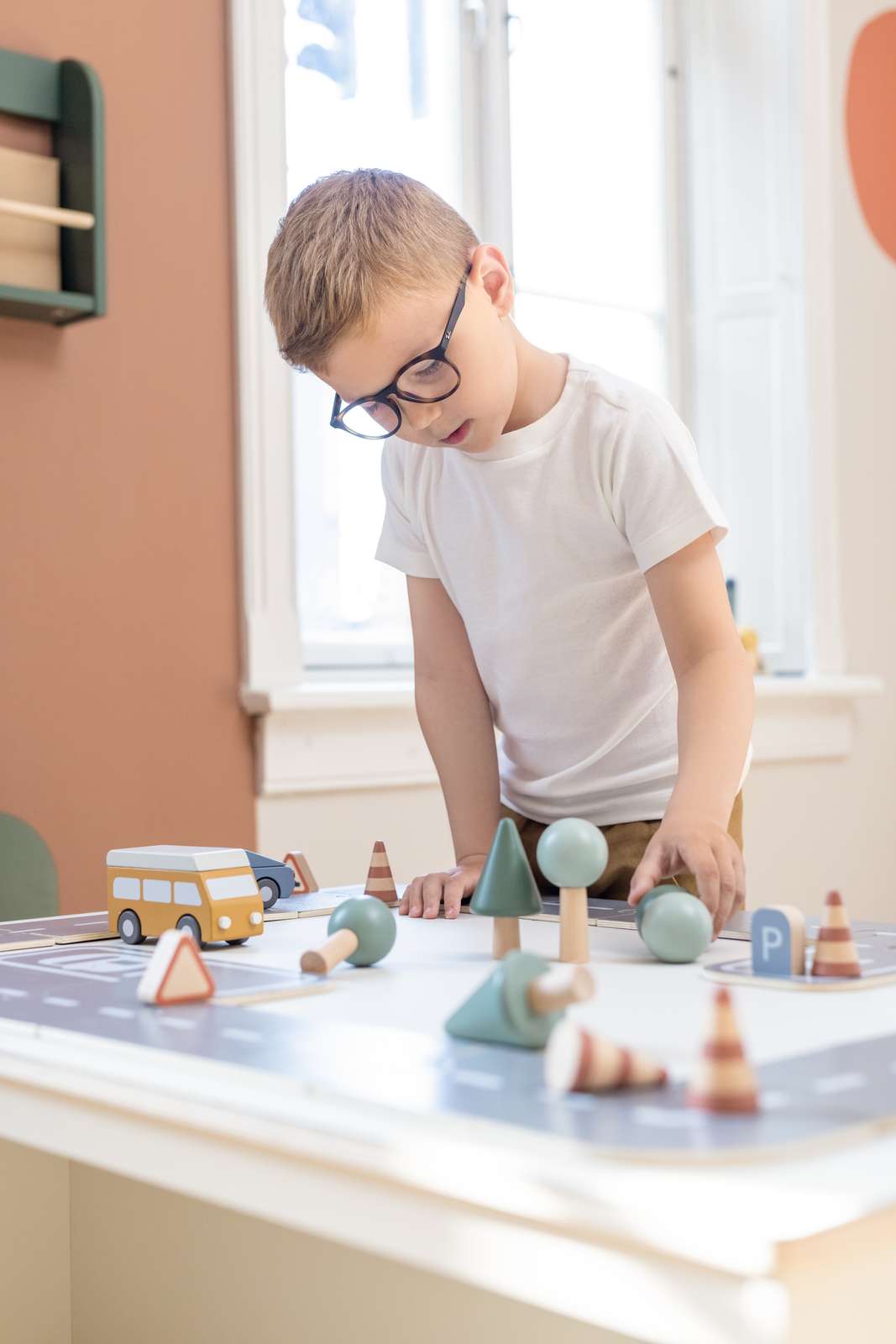 Con los accesorios para el circuito para coches, tu hijo aprenderá a descodificar iconos y su significado: información que le será muy útil en el futuro. Es una forma divertida y educativa de presentarle las reglas básicas del tráfico.