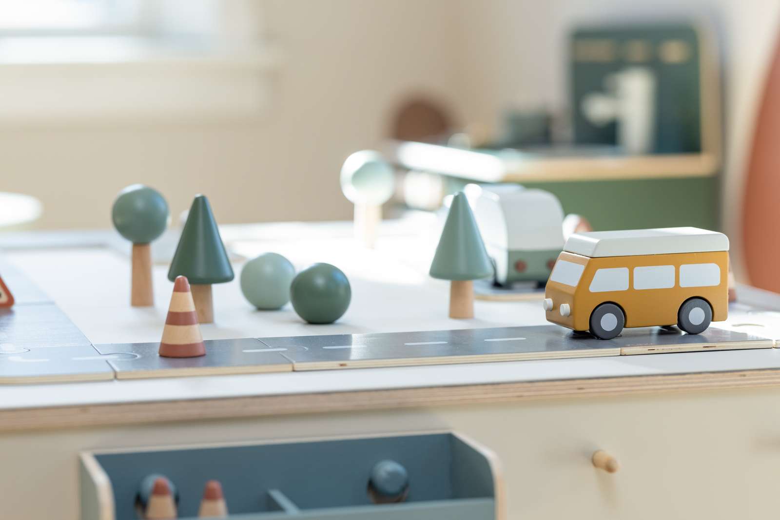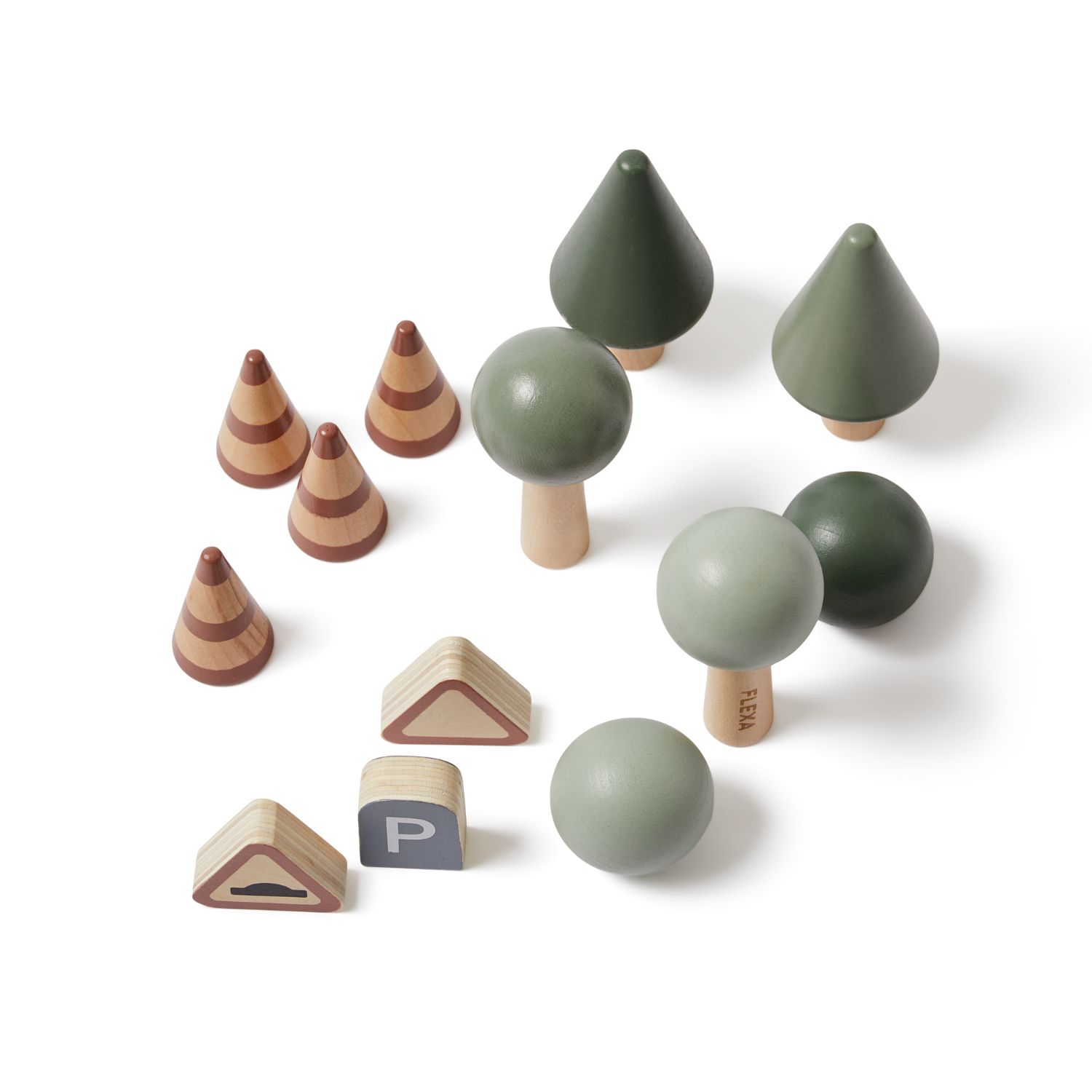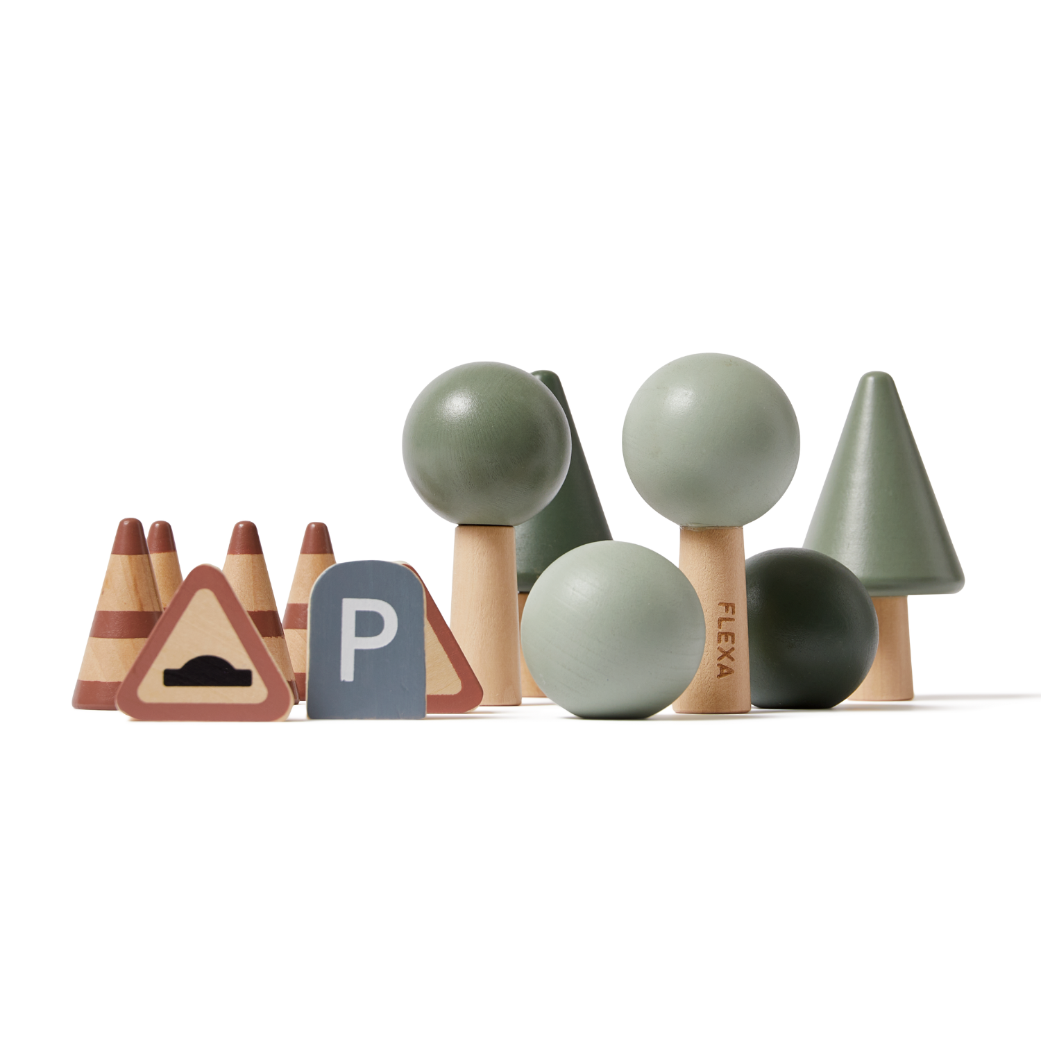 El complemento perfecto para los coches de juguete de tu hijo es este grupo de árboles, arbustos, conos de tráfico y señales de tráfico en miniatura. El pequeño conductor puede usar estos objetos para simular, por ejemplo, que hay obras en la carretera o una agradable área verde de pícnic en la siguiente salida. ¡Es cuestión de imaginación!