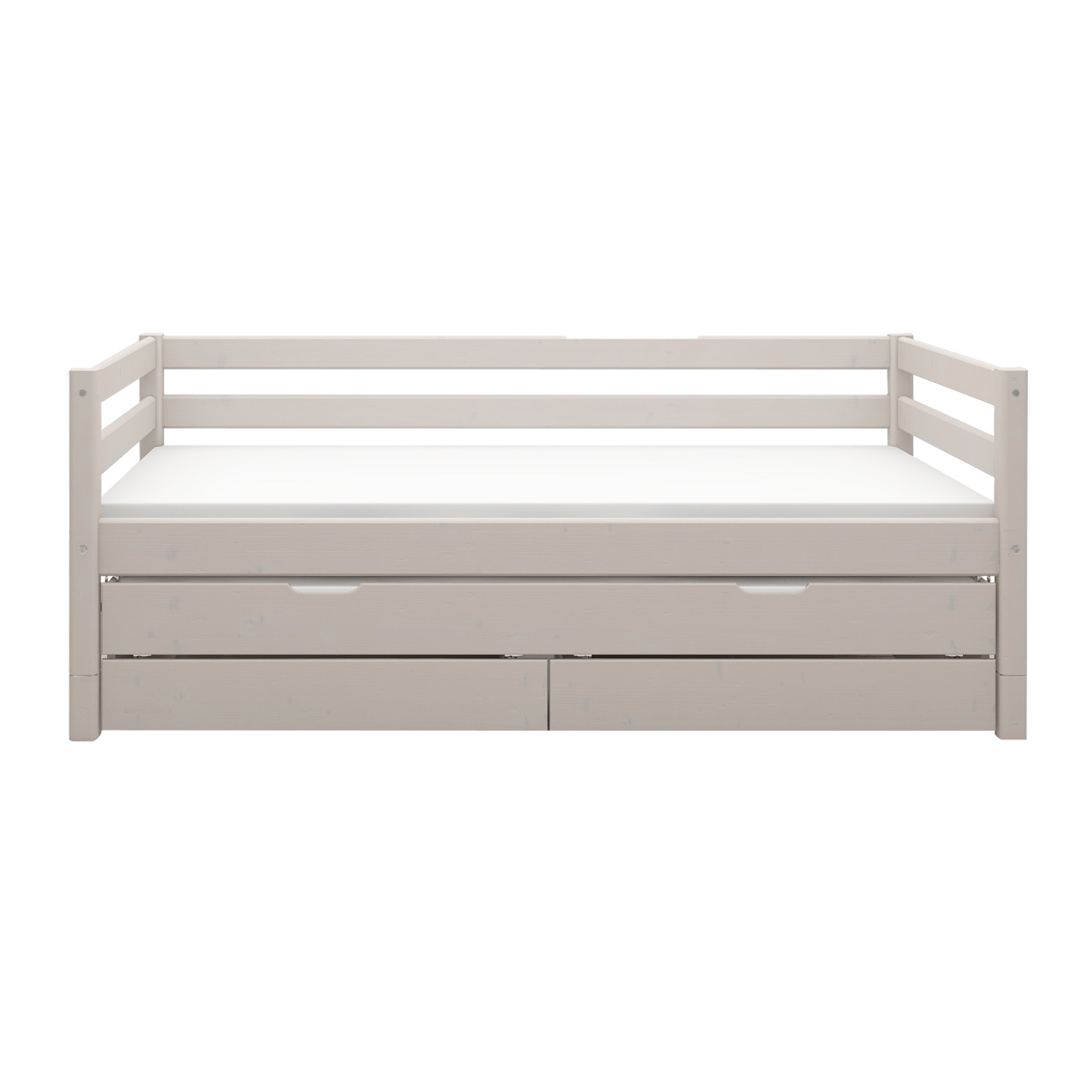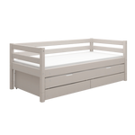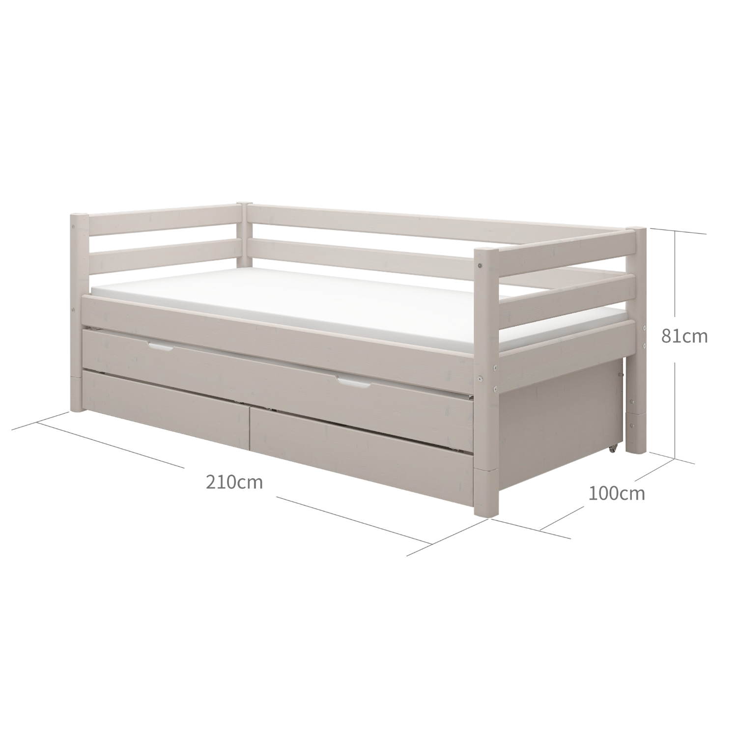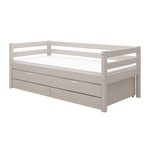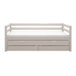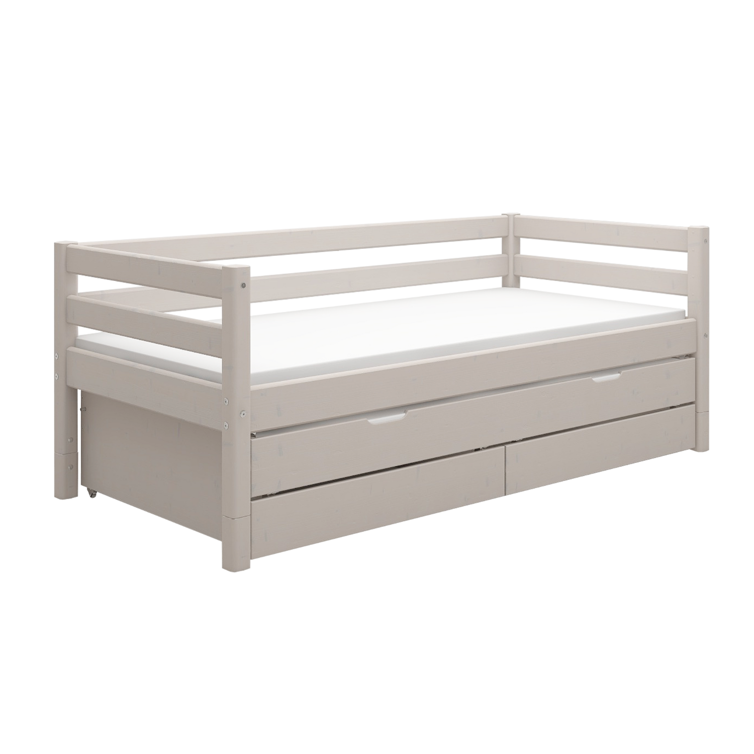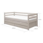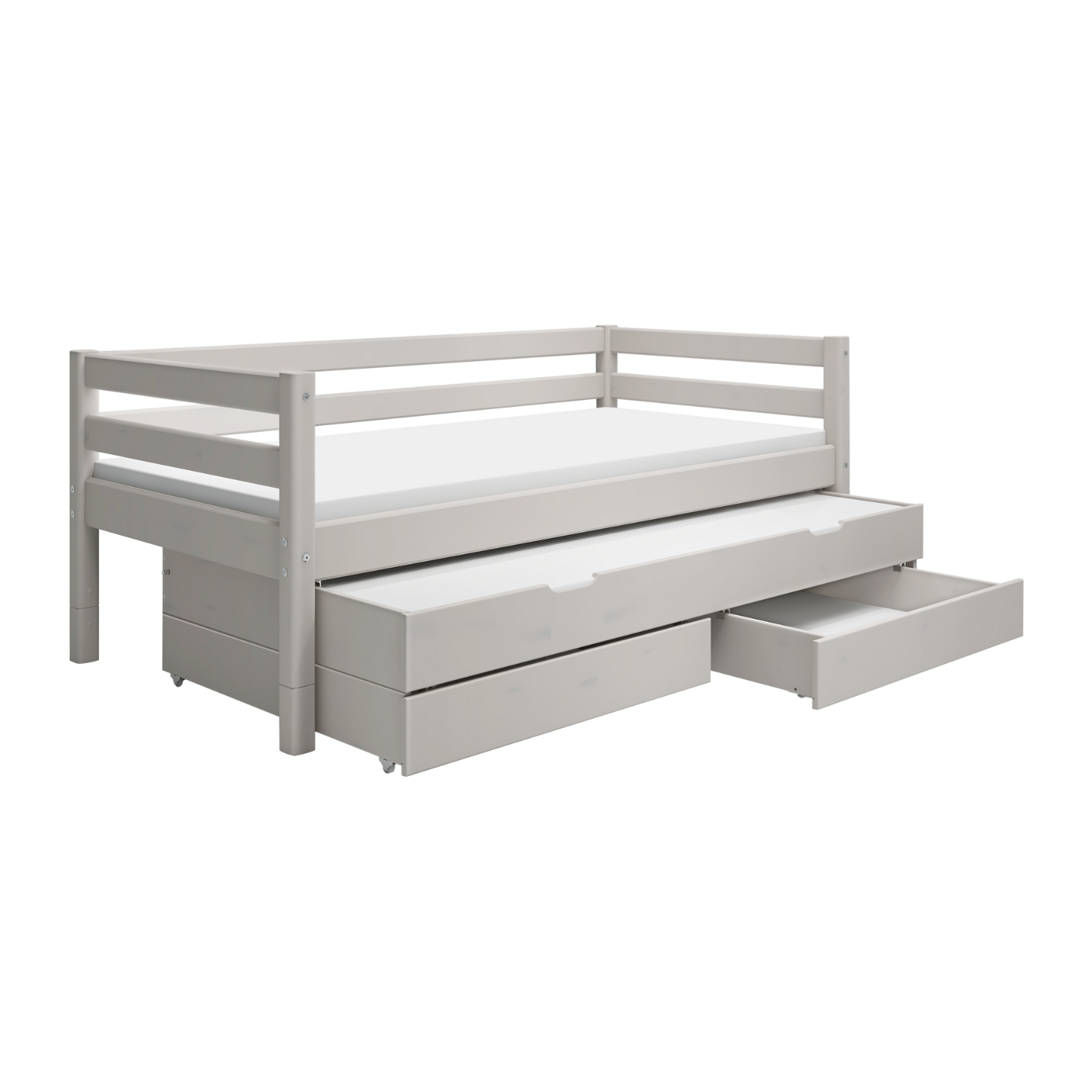 Cama individual con cama nido, almacenaje y barrera de seguridad, 90x200 cm, Gris