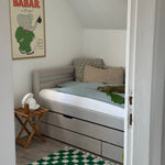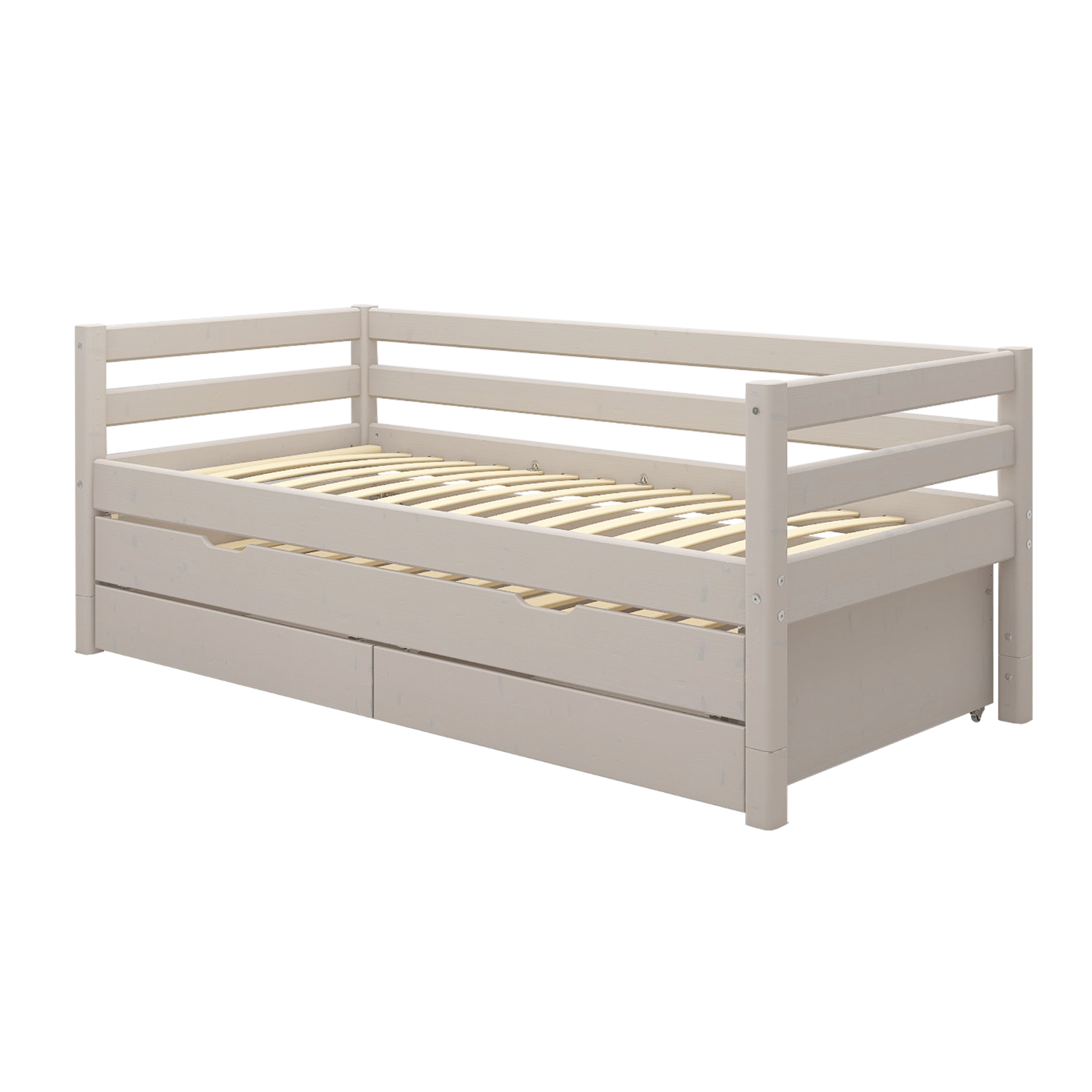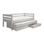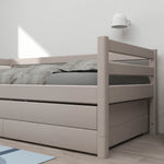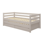 Cama CLASSIC con respaldo, cabecero, piecero y cama nido bajo la cama. La cama es ideal para adolescentes, amigos o familiares de visita. La cama presenta un diseño escandinavo clásico, y está disponible en tres colores.