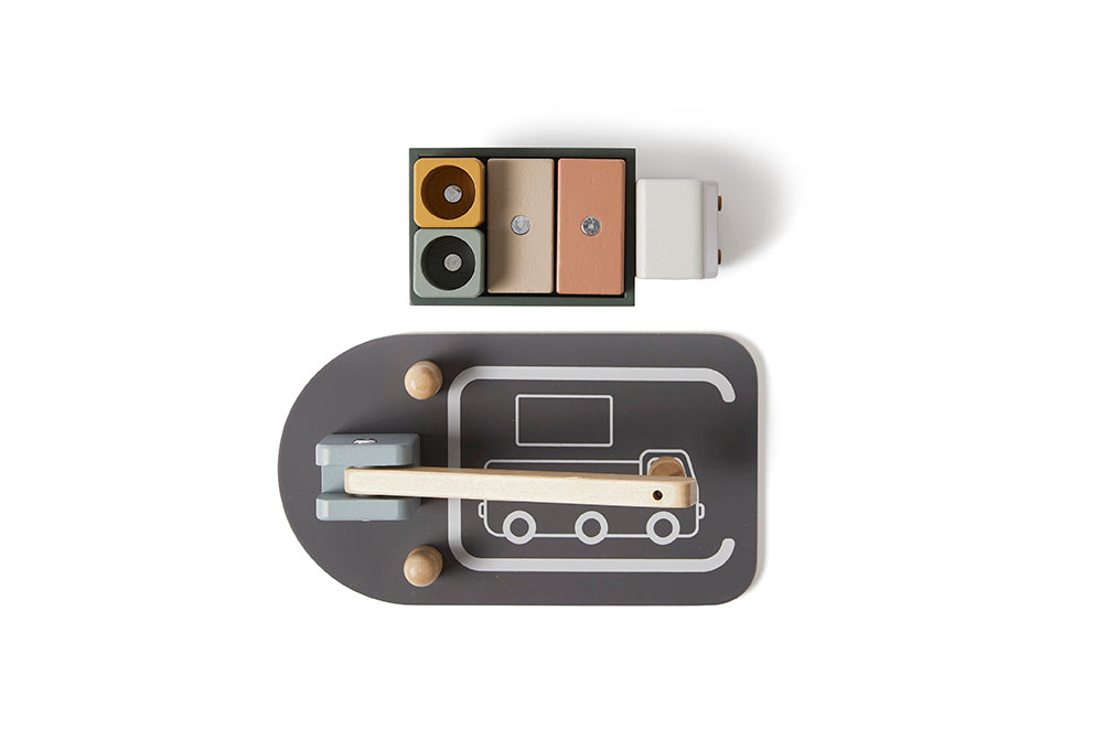 Les petits enfants adorent jouer à charger et décharger et ils peuvent y passer des heures. Ici, votre tout-petit apprend à manipuler les bacs avec ses mains et à faire entrer les conteneurs sur la plate-forme du camion. L’aimant rend le jeu encore plus intéressant.