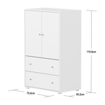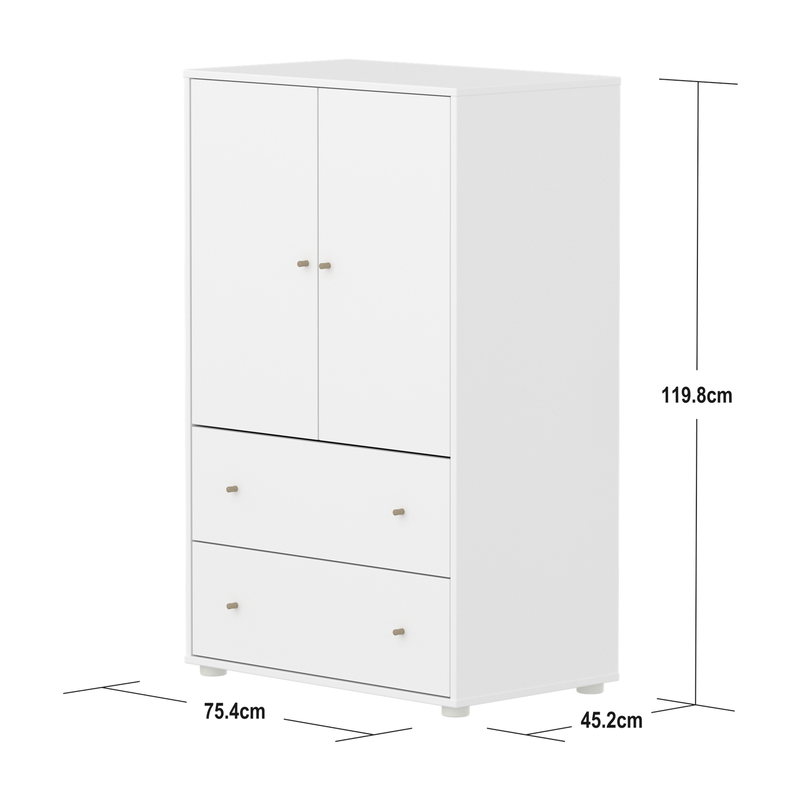 SAGA Armoire, 2 portes et 2 tiroirs, Poignées Oat, Blanc