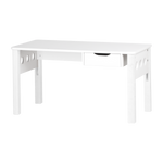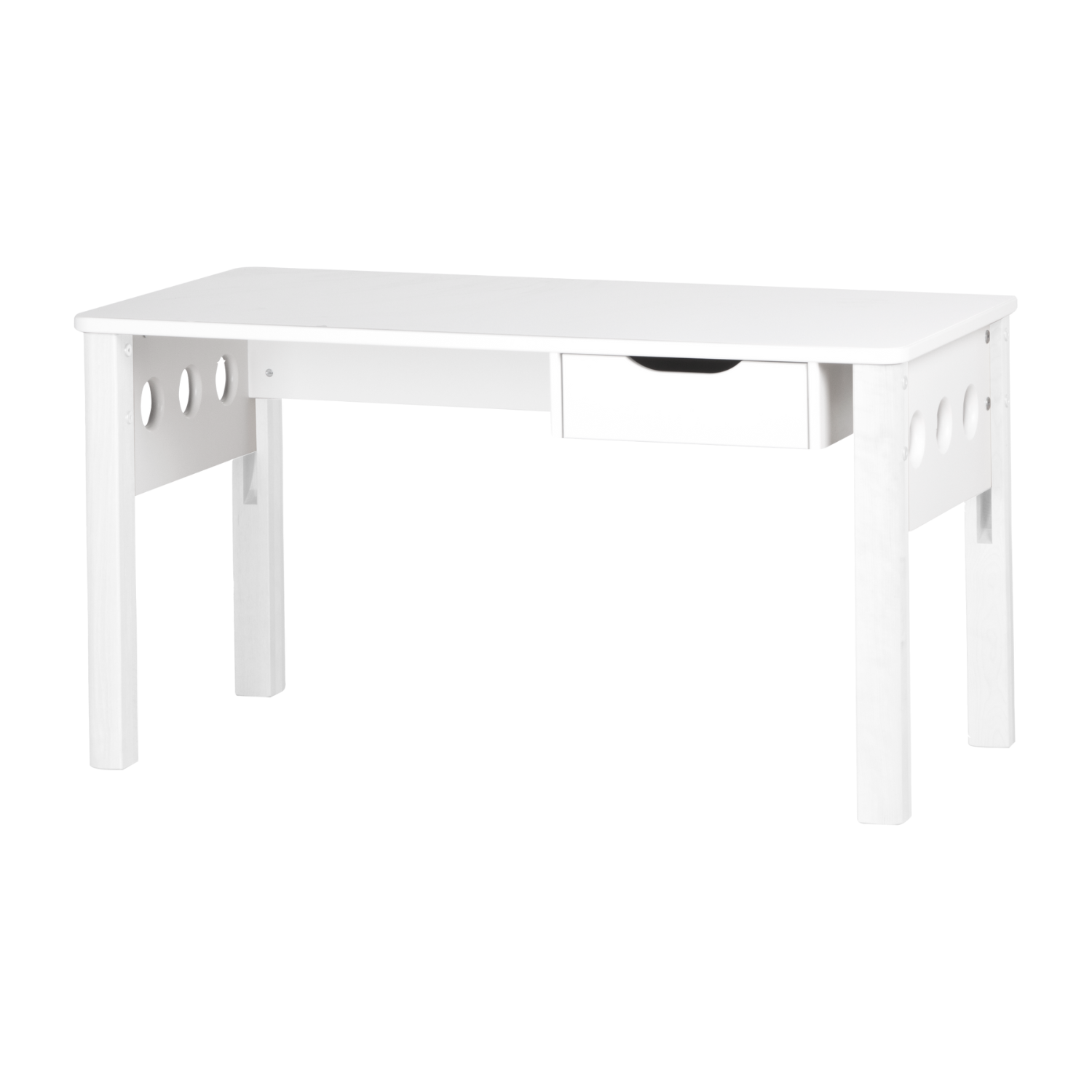 Bureau réglable en hauteur selon les besoins de l'enfant, pour qu'il adopte une bonne posture assise et reste en bonne santé pendant qu'il travaille. Le bureau est équipé d'un tiroir pour ranger papier, crayons et cahiers. Le bureau est en MDF et les pieds sont en bouleau.
