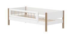 Lit simple avec barrière de sécurité, 90x200 cm, Blanc/Chêne