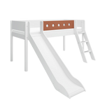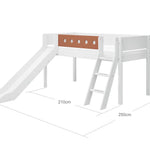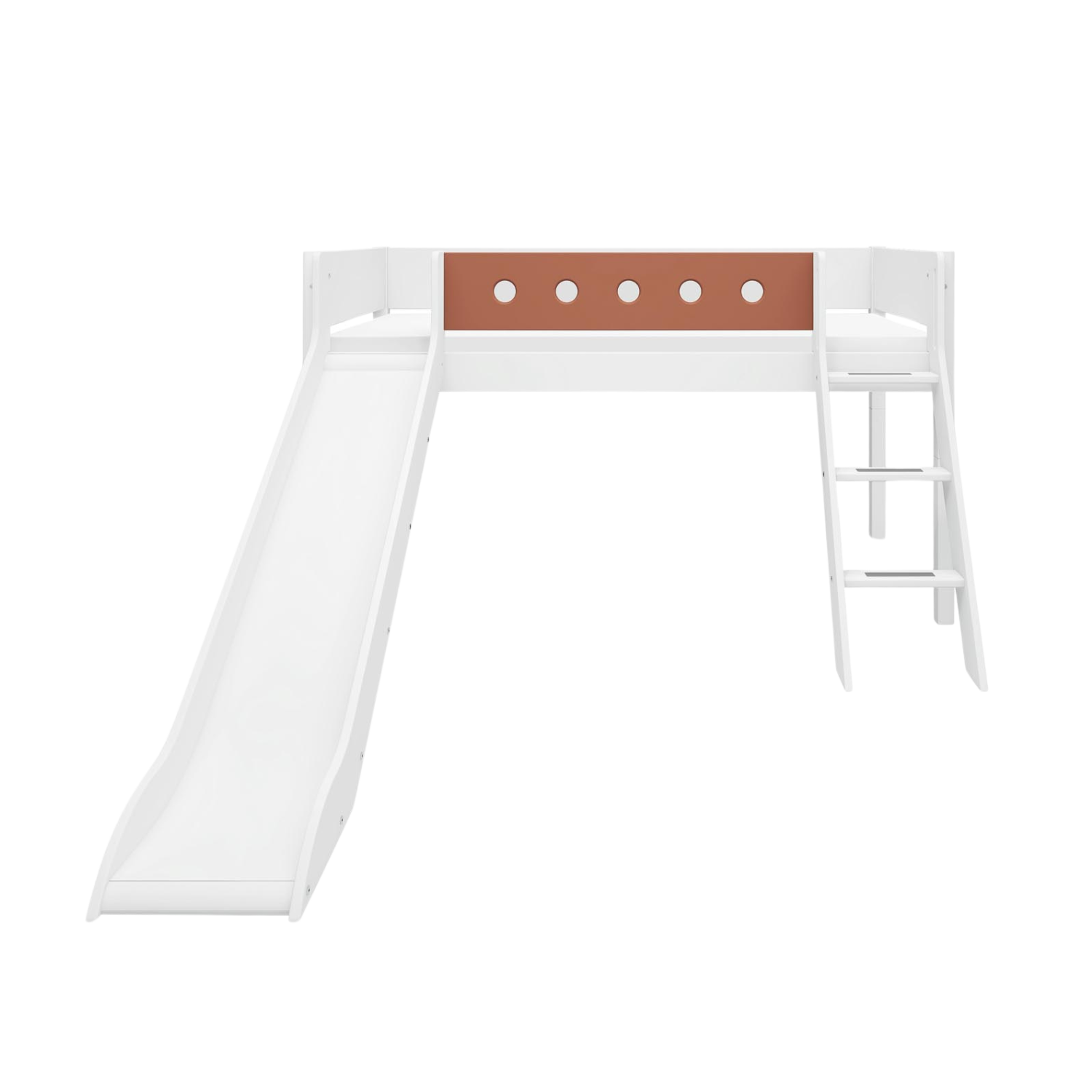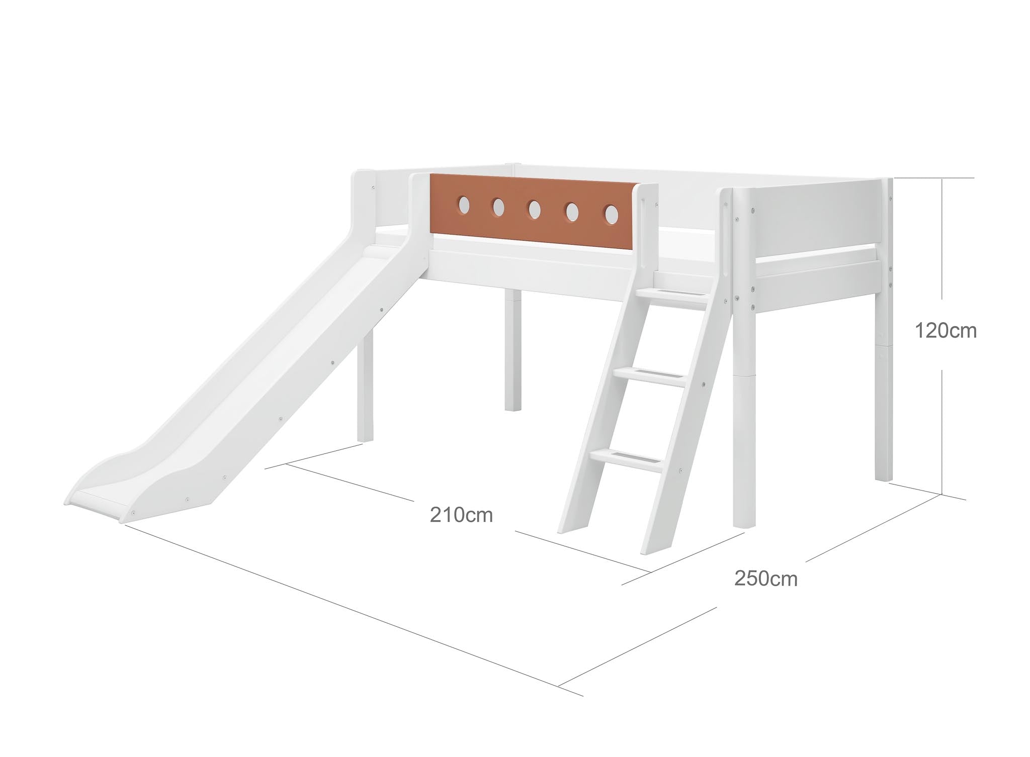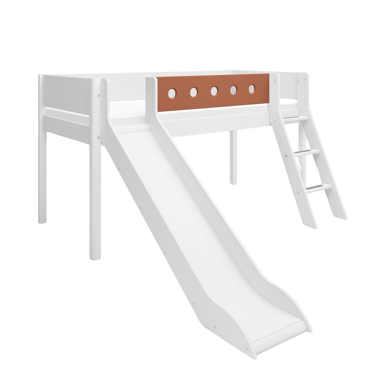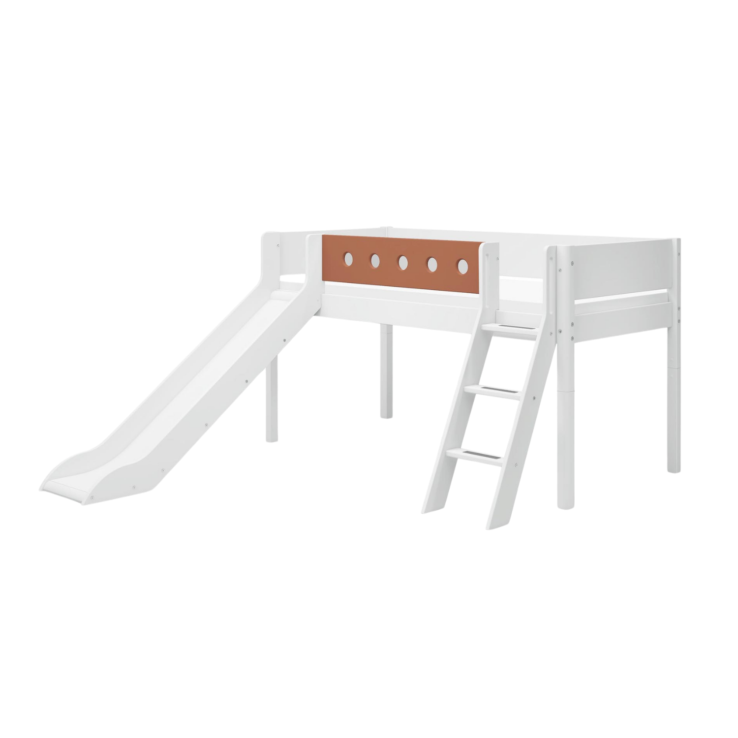 Lit mi-hauteur White avec échelle inclinée et toboggan. Le lit qui va transformer la chambre d'enfant en aire de jeu !