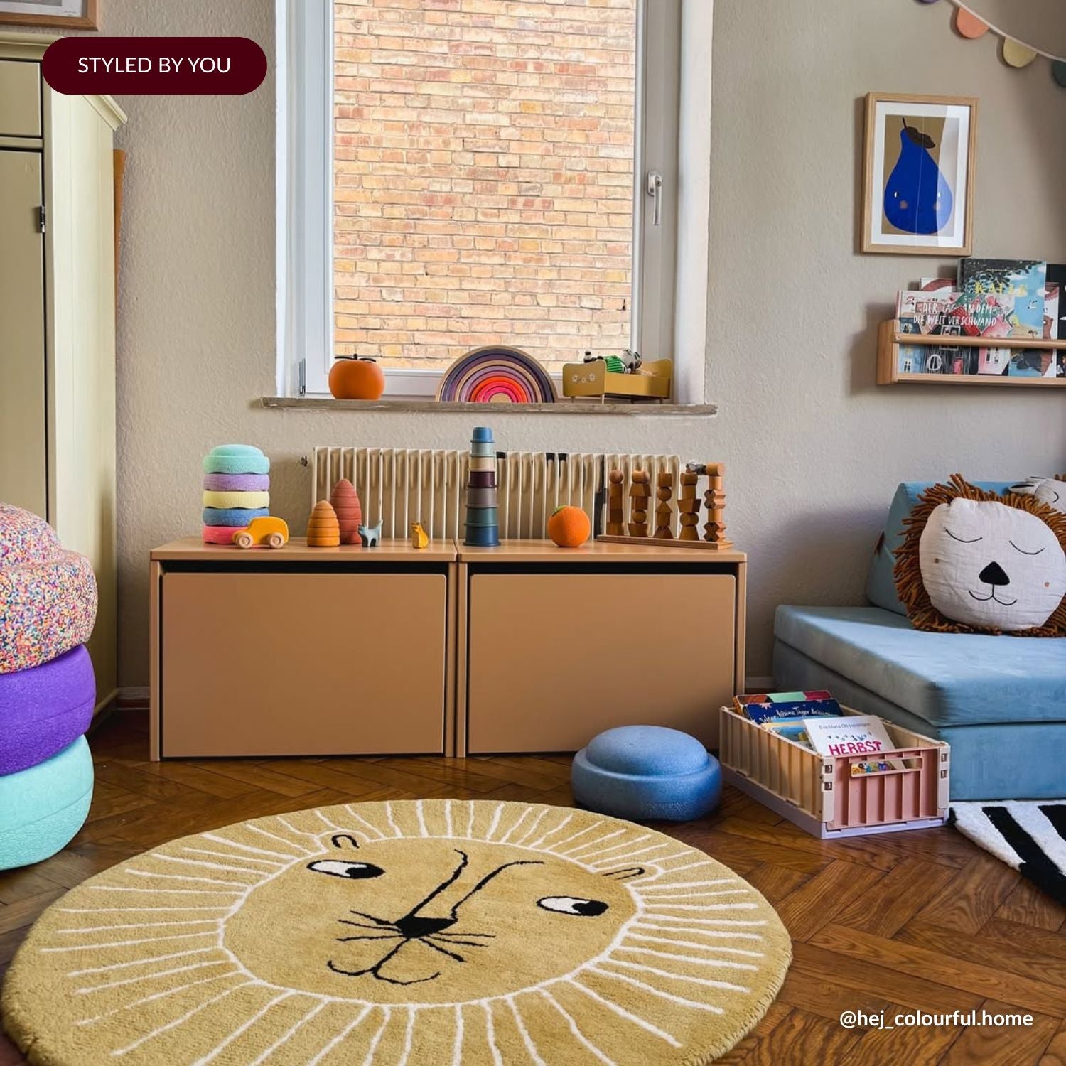 Le banc de rangement FLEXA Dots 3 en 1, conçu par Charlotte Høncke, est le meuble de rangement idéal pour les jouets des enfants. Il peut être utilisé dans la chambre d'enfant, dans le salon ou dans l'entrée, et il peut servir de rangement, de banc et de table de chevet. Les roulettes en caoutchouc souple protègent le sol et permettent même au tout petit enfant de sortir la boîte de rangement et de ranger tous ses jouets en quelques secondes. La découpe du banc est prévue pour que l'enfant ne se coince pas les doigts lorsque le banc est refermé. Le banc de rangement est disponible en divers couleurs récréatives et il est en MDF.
