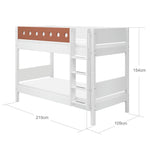 Le lit superposé White avec échelle droite est la solution gain de place idéale pour les petits logements. L'échelle a des marches anti-dérapantes et des poignées intégrées, et peut être placée aux deux extrémités du lit.