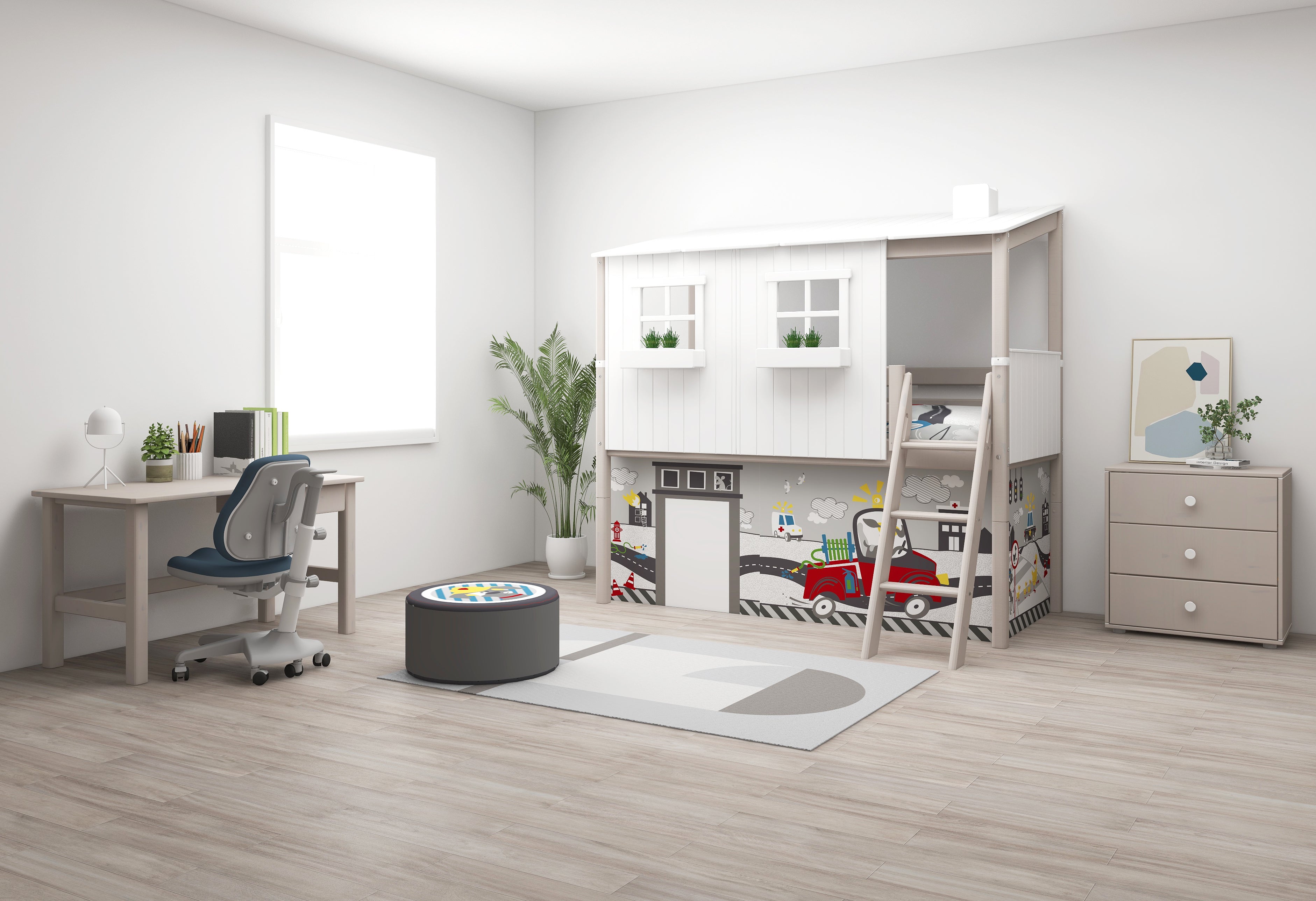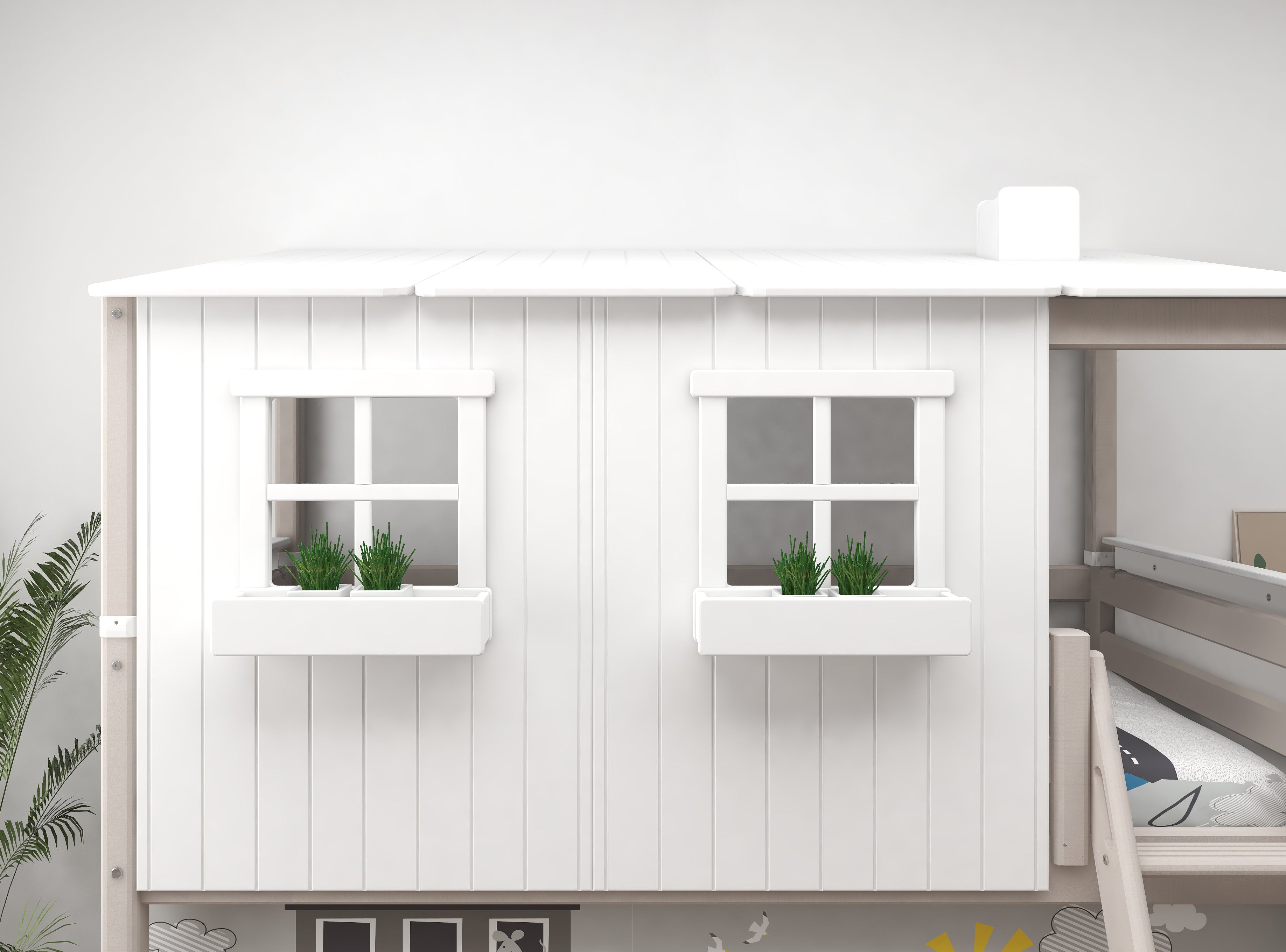 Bouw je eigen huisje met uitzicht. In het CLASSIC huis op een halfhoogslaper kun je in het huisje zelf spelen, en op de grond onder het bed. Als je kind behoefte heeft aan rust, kan hij zich in het Classic-huis ook terugtrekken en zijn eigen omgeving creëren.